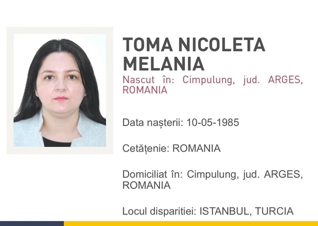 Românca în vârsta de 39 de ani, pe numele de Melania Nicoleta Toma, a dispărut acum mai bine de o săptămână, în timp ce se afla în vacanță în Turcia, alături de o prietenă, transmite antena3.ro.