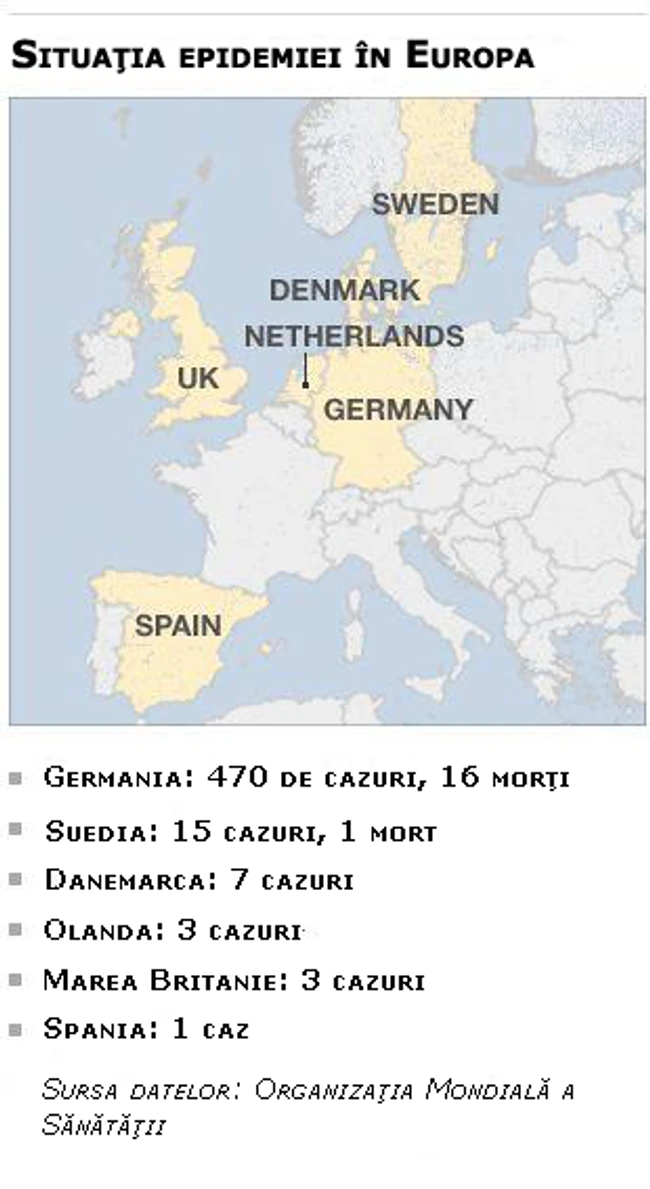 Infecţia a omorât până acum 17 oameni în Europa (16 germani şi un suedez) şi sunt 1.500 de cazuri de îmbolnăvire.