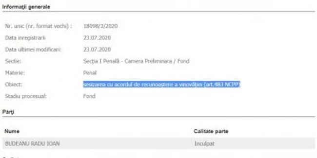 Următoarea etapă a dosarului lui Radu Budeanu este judecarea în procedura simplificată.