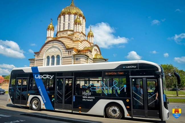 Primul autobuz electric asamblat în România, testat în Făgăraş