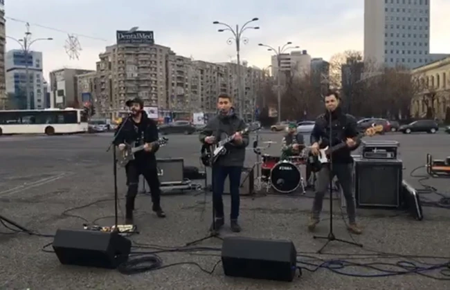 Protest inedit al unei trupe rock în Piaţa Victoriei, faţă de modificările la legile Justiţiei. Protestatar amendat cu 1.500 de lei