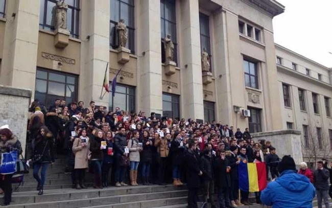 "Colegi, vă propunem să aduceţi cu voi copii ale Constituţiei României. Ne vedem pe treptele facultăţii, în faţa lui Cicerone, a lui Papinian, a lui Justinian, Solon şi Licurg pentru că ştim de peste 2000 de ani că dreptul nu se construieşte arbitrar, pentru diferite interese care nu sunt ale "cetăţii". Într-un asemenea moment critic credem că trebuie să arătăm că studenţii, cei care de-a lungul timpului au fost primii care au criticat asemenea măsuri, sunt în continuare o voce relevantă în societate", spun studenţii la Drept.