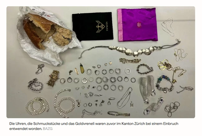 0Doi români au fost arestaţi în Elveţia după ce oamenii legii au găsit în maşina lor mai multe bijuterii furate, pe care le ascunseseră, printre altele, într-o pâine.