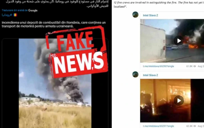 La începutul lunii august site-ul inforadar.mapn.ro a dezmințit o altă știre falsă, cu privire la incendierea unui așa-zis depozit de carburanți pe teritoriul României.