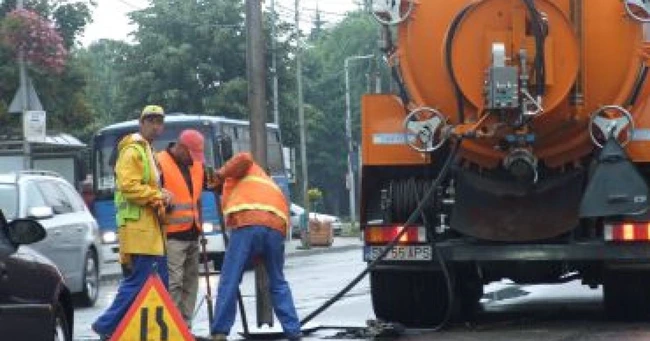 De la orele dimineţii, angajaţii Apaserv se chinuiau să desfunde canalizarea de pe bulevardul Ion I.C. Brătianu, înfundat de ploaia care a căzut în ultimele ore.