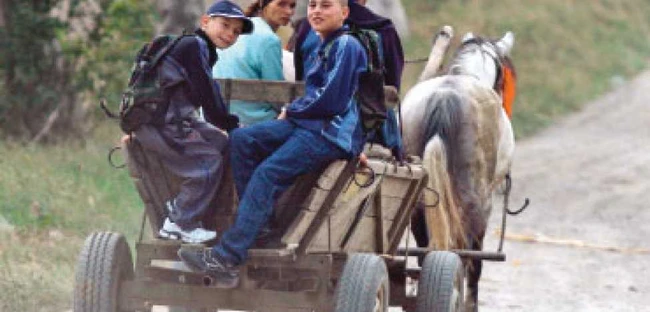 Pentru a ajunge la timp la începerea festivităţii de deschidere a şcolii, băieţii au fost duşi cu căruţa familiei. „Dacă avem cum, ne ducem copiii cu căruţa în comună, ca să nu întârzie dimineaţa. La întoarcere trebuie să facă drumul pe jos“, a declarat tatăl băieţilor.