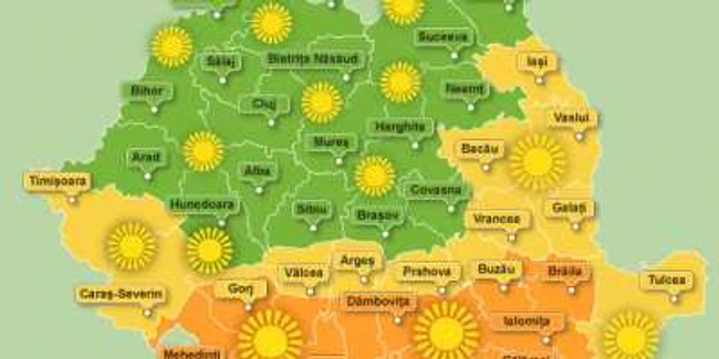 De asemenea, meteorologii au emis o atenţionare Cod Galben valabilă pentru 15 judeţe, unde sâmbătă şi duminică vremea va deveni caniculară în sudul şi estul ţării, temperaturile vor atinge valori de 36...38 de grade C, iar indicele temperatură-umezeală (ITU) va depăşi pragul critic de 80.