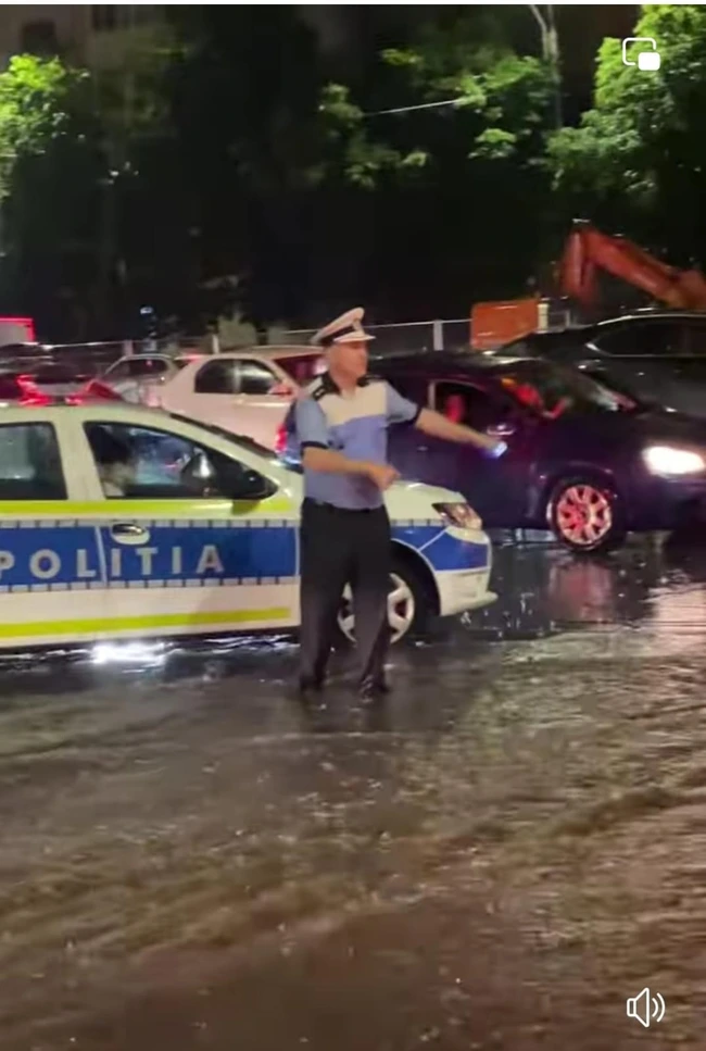 Comandantul Brigăzii Rutiere București a rămas în mijlocul intersecției chiar și în timpul furtunii, pentru a asigura fluidizarea circulației după concertul trupei Coldplay.