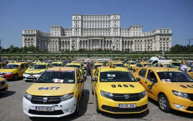 Taximetriştii care protestează în centrul Capitalei cer adoptarea unui proiect de modificare a Legii taximetriei prin care aplicaţiile prin care se comandă maşini, precum Clever Taxi, Taxify, dar şi Uber, vor putea fi operate doar de firmele de taximetrie.