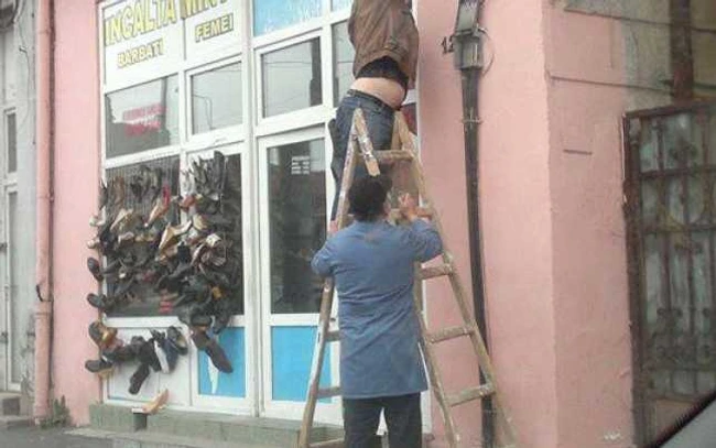 0Promulgarea legii care interzice activităţile comerciale ale magazinelor, bancilor sau restaurantelor în clădiri cu risc seismic I sau II nu s-a lăsat fără urmări, demonstrând inventativitatea uneori fatală, a românilor. O poză publicată pe Facebook înfăţişează cum doi angajaţi încercau să desprindă bulina de pe clădirea în care funcţiona un magazin de pantofi.
