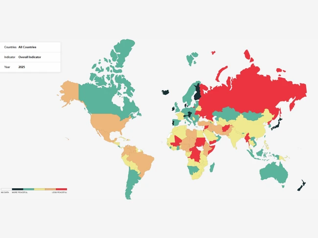 Islanda, Irlanda, Noua Zeelandă, Austria și Elveția sunt primele 5 cele mai pașnice țări din lume în 2025. Următoarele 5 locuri sunt ocupate de Singapore, Portugalia, Danemarca, Slovenia și Finlanda.