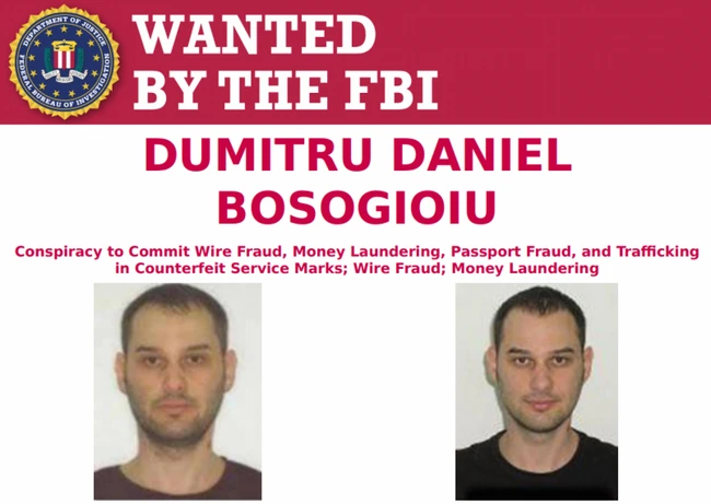 Dumitru Daniel Bosogioiu era căutat pentru presupusa sa participare la o schemă sofisticată de fraudă pe internet, prin care erau postate anunţuri false pe site-uri de vânzări şi licitaţii din SUA. Sursele judiciare spun că aceste anunţuri conţineau imagini, descrieri de vehicule şi alte articole de vânzare care nu existau cu adevărat. Escrocii se prezentau drept vânzători şi negociau prin e-mail tranzacţiile cu cumpărători nebănuitori din Statele Unite.