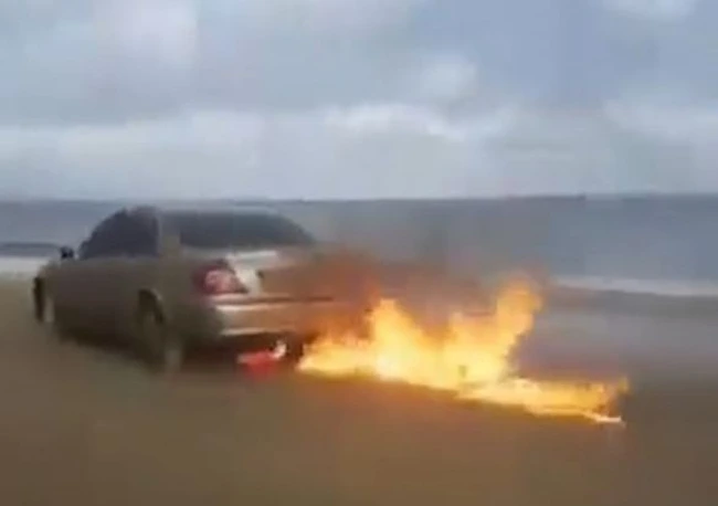 Un român şi-a incendiat maşina pe plajă şi a publicat filmuleţul pe Facebook