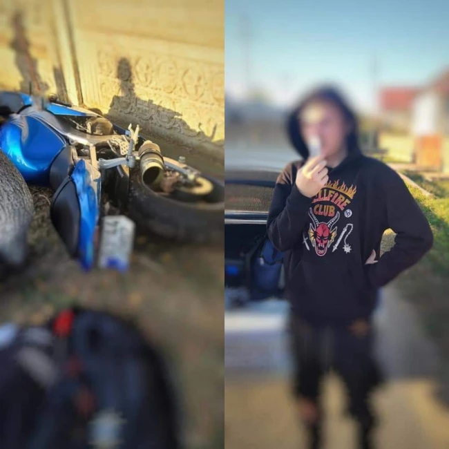 Băiatul a fost prins după ce și-a abandonat motocicleta pe marginea drumului, în încercarea de a scăpa de polițiști.
