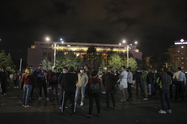 Aproape 200 de persoane, din peste 2.500 câte sunt aşteptate miercuri seara la protestul angajaţilor din industria HoReCa, s-au adunat în Piaţa Victoriei. Oamenii sunt paşnici, dar mulţi dintre ei nu poartă mască.Aproape 200 de persoane, din peste 2.500 câte sunt aşteptate miercuri seara la protestul angajaţilor din industria HoReCa, s-au adunat în Piaţa Victoriei. Oamenii sunt paşnici, dar mulţi dintre ei nu poartă mască.