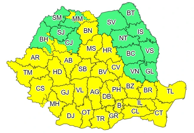 ALERTĂ METEO Cod galben de furtună și ploi torențiale în aproape toată țara