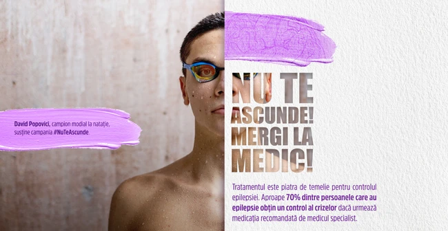 Dr. Daniela Stanov: Campania #NuTeAscunde și-a propus un obiectiv simplu, acela de a crește calitatea vieții pacientului cu epilepsie. Ca prim pas pentru acest lucru, ne-am dorit să creștem adresabilitatea pacientului către medicul neurolog. Așa cum a spus mai devreme și doamna doctor, printr-un tratament adecvat și un stil de viață customizat, un procent de 70 % dintre pacienții diagnosticați cu epilepsie pot ajunge să ducă o viață normală. De aceea este necesară implicarea mai multor entități, de la medicii de familie care au sub observație pacienți cu epilepsie, până la alte specialități care vin în contact cu acest tip de pacienți. Este nevoie ca pacientul cu epilepsie să fie îndrumat pentru evaluare sau reevaluare periodică. Sunt situații în care accesul la medicul neurolog nu este foarte facil, dar pacientul trebuie să fie conștient că nici un efort nu este prea mare pentru a avea parte de o evaluare corectă și un tratament adecvat. Am gândit această campanie și l-am ales ca ambasador pe David Popovici - multiplu campion la natație, pentru că el este simbolul speranței, ne-a demonstrat că absolut totul este posibil. David a beneficiat în copilărie de un sfat medical prețios care pur și simplu i-a permis să ajungă campionul de astăzi.