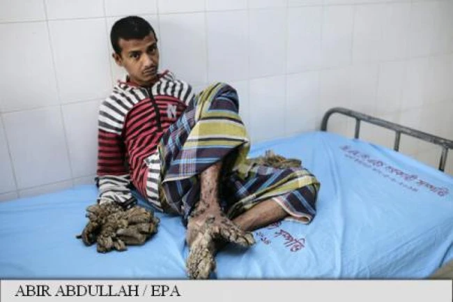 0Abul Bajandar, 26 de ani, originar din Bangladesh, a fost operat la finalul săptămânii de o echipă de medici de la Spitalul Universitar din Dacca. Tânărul suferea de epidermodisplazie veruciformă, o boală genetică de piele, extrem de rară. Mai simplu spus, este vorba de negi uriaşi crescuţi la nivelul mâinilor şi picioarelor, care cântăreau în cazul lui Abul circa cinci kilograme.