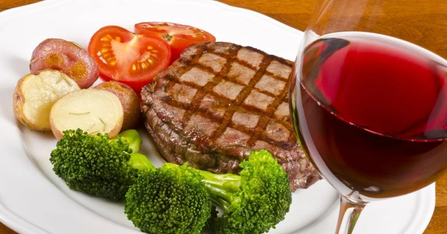 După ce carnea a fost servită cu un pahar de vin roşu, nivelul de colesterol nu s-a modificat, iar în unele cazuri chiar a scăzut.