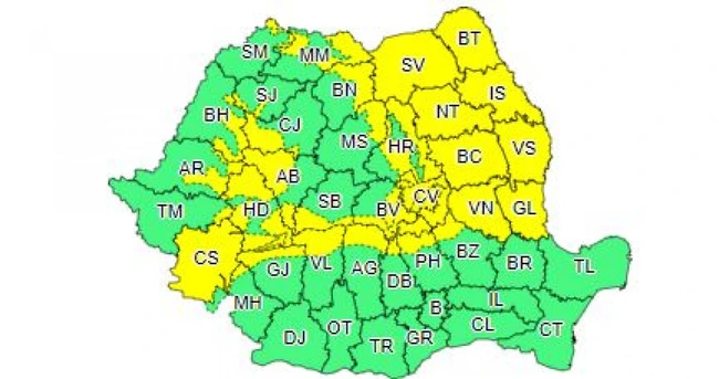 În plus, pentru 19 judeţe a fost emis cod galben de vânt puternic.