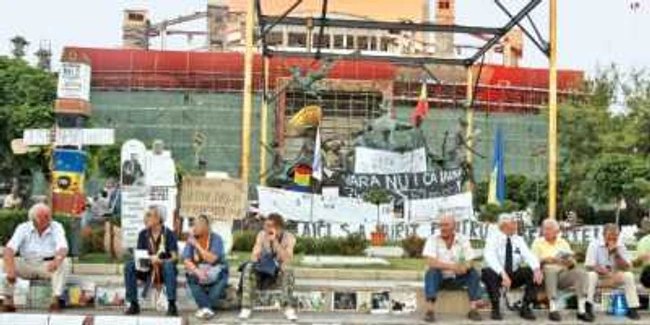 La Piaţa Universităţii, locul unde la începutul acestui an s-a desfăşurat una dintre cele mai puternice mişcări de protest de după Revoluţie, au mai rămas numai câteva bannere agăţate de statuile-paiaţe din faţa teatrului şi un grup firav de revoluţionari, traşi mai la umbră şi aşezaţi pe scaune. Protestează, zic ei, pentru reintrarea în plată a indemnizaţiilor de „luptători" suspendate de Guvernul Boc în decembrie 2011.