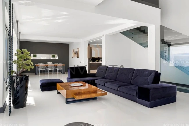 Imobilul are o suprafață utilă de peste 400 de metri pătrați, distribuită pe trei niveluri. Zona de zi include acces direct către o terasă panoramică și o piscină infinity, oferind o experiență urbană exclusivistă.