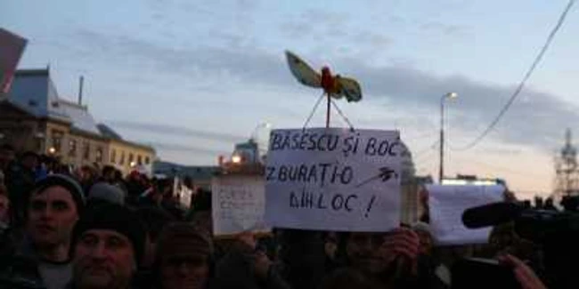 La nunta Elenei Băsescu, protestatarul nostru era în mijlocul celor care cereau demisia tatălui miresei.