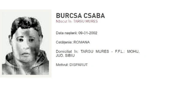 În urmă cu 20 de ani, Burcsa Csaba, un băiețel în vârstă de doar doi ani de zile, din Târgu Mureș, a plecat de acasă și nu s-a mai întors vreodată. Ultima oară, acesta a fost văzut în localitatea Mohu, județul Sibiu, când a plecat din curtea unei case. De atunci, părinții și apropiații nu mai știu absolut nimic despre el, chiar dacă autoritățile l-au căutat o lungă perioadă de timp.