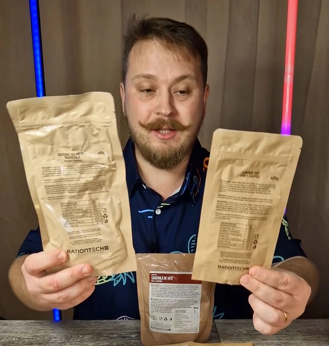 0Un vlogger rus cunoscut pentru clipurile în care testează rații militare din diferite țări a publicat o serie de trei videoclipuri în care analizează cea mai nouă rație individuală de hrană a Armatei Române. Creatorul de conținut a desfăcut pachetul destinat unei zile întregi - mic dejun, prânz și cină și a comparat rația românească cu cele din Franța, Anglia și Canada, concluzionând că pachetul Armatei Române este vizibil mai mare.