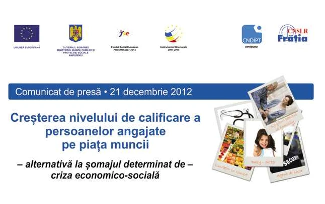 0Comunicat de presă 21 Decembrie 2012: Creşterea nivelului de calificare a persoanelor angajate pe piaţa muncii alternativă la şomajul determinat de criza economico-socială. Calificarea-necesara evolutiei personale.