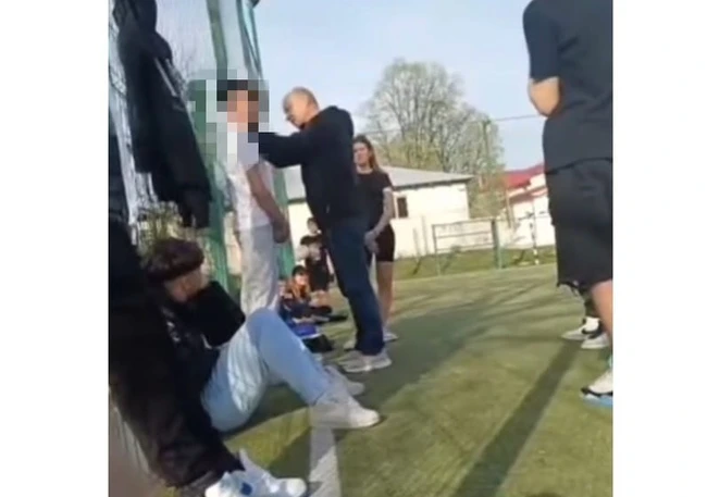 Potrivit imaginilor, surprinse de un elev în toamna anului trecut, în timpul unei pauze, bărbatul îl lovește cu palma peste cap și îl ține de gât. Incidentul s-a petrecut pe terenul de sport al școlii, în prezența mai multor elevi, pe fondul unui conflict între doi copii.