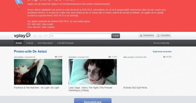 vPlay, cel mai mare site românesc ce oferă gratis filme noi, a mai fost restricţionat în iulie 2012, din cauza unui scandal în care RCS&RDS a fost acuzată că a blocat accesul abonaţilor de internet la acest site.