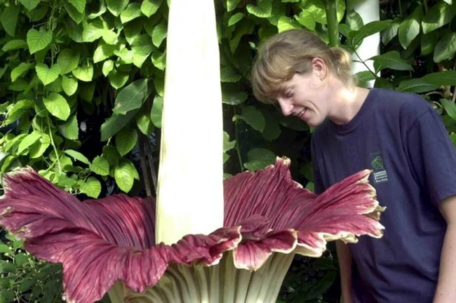 Când înfloreşte, Titan Arum este cea mai mare floare din lume, putând atinge diametrul de 2 metri. Este originară din Sumatra, Indonezia şi după ce înfloreşte se încălzeşte la aproximativ 40 de grade Celsius. Căldură pe care o emană atrage de asemenea gândacul aflat în căutare de cadavre putrezite.