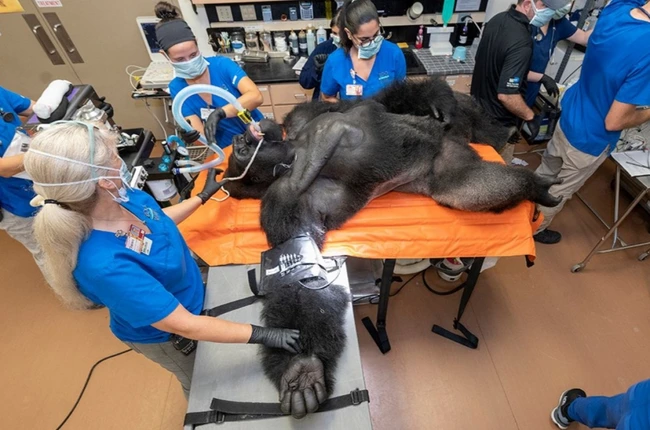 Imaginile cu o gorilă de 175 de kilograme care a trecut printr-o examinarea medicală au devenit virale pe internet
