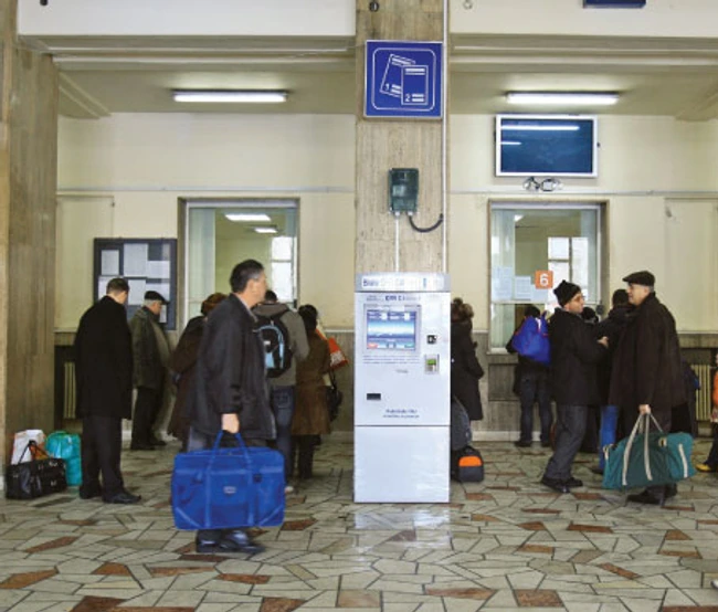 Ion Ciocârlan (50 de ani) se uita ieri cum o tânără utiliza automatul de bilete. În timp ce fata îşi lua biletul pentru Târgovişte din aparat, bărbatul a spus: "Dar trebuia să fie cineva aici, ca la bancă, când am învăţat să ne plătim cu cardul facturile la utilităţi, şi să ne explice cum să-l folosim".