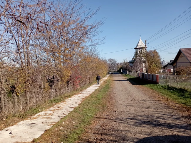 Un altul le folosește pe post de trotuar. Se oprește în fața bisericii și face o cruce. Mărturisește că este bucuros că măcar are unde se refugia de noroi. ”Tinerii au plecat domnule. Aici numai agricultură și sărăcie. Ce să facă? Copii puțini, mulți bătrâni. Nu prea am văzut biciclete prin sat. Poate mai sunt ceva copii cu bicicletă. Dar eu merg pe astea, nu știu se chiamă, ca să nu umblu prin glodăraie( n.r. noroi). Asfalt este numai la drumul principal, la șosea, restul pământ. Mai pietriș câteodată”, spune botoșăneanul.