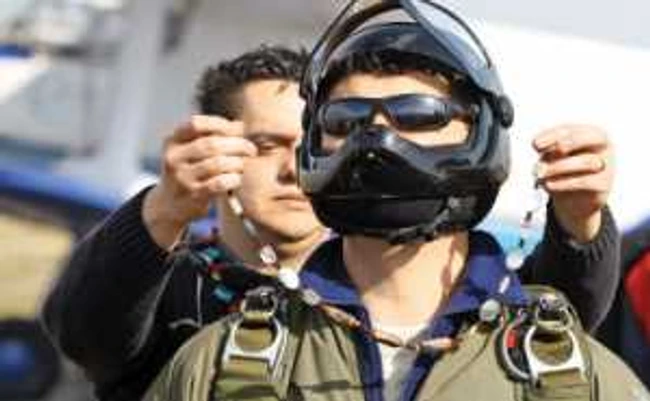 BRAŞOV. Lansare de bijuterii la 1.200 de metri altitudine. Designerul Adrian Haiduc şi-a prezentat noua colecţie de bijuterii cu ajutorul a 10 paraşutişti, care au purtat coliere în timp ce coborau din văzduh.