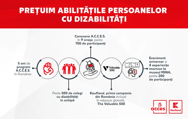„Niciun actor economic nu poate, de unul singur, acoperi toate nevoile de accesibilitate. Prin urmare, credem că parteneriatele locale și globale sunt importante pentru a avea un impact real. Suntem mândri să fim prima organizație din România care se alătură The Valuable 500, cea mai mare rețea globală dedicată incluziunii persoanelor cu dizabilități. Totodată, colaborăm cu eJobs și Undelucram.ro, alături de Accessi+, pentru a facilita accesul online al persoanelor cu dizabilități la locurile de muncă. Chiar dacă este un subiect mai puțin cunoscut, multe dintre persoanele cu dizabilități sau cu diferite deficiențe întâmpină dificultăți în navigarea pe internet, în special pe site-urile care nu sunt accesibile. De aceea, transformarea mediului digital într-un loc mai accesibil și prietenos pentru toți utilizatorii reprezintă pentru noi o continuare firească a demersurilor pe care le-am început deja pentru accesibilizarea spațiilor fizice din magazinele și sediile companiei.”, a declarat Estera Anghelescu, Director de Recrutare & Employer Branding, Kaufland România.