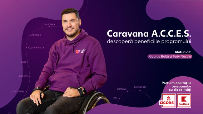 0București, 4 martie 2024 – Kaufland România a lansat „Caravana A.C.C.E.S.”, împreună cu George Baltă, ambasadorul programului Kaufland A.C.C.E.S., fost jucător de rugby, maratonist în scaun rulant și speaker motivațional, și regizorul Tedy Necula. Proiectul este un nou demers al retailerului prin care încurajează egalitatea de șanse prin facilitarea accesului la oportunități de lucru pentru persoanele cu dizabilități. Caravana, care va ajunge în nouă orașe din România, urmărește să ofere informații despre posturile disponibile în companie și mediul de lucru pozitiv, sprijinind angajarea persoanelor cu dizabilități în magazinele Kaufland.