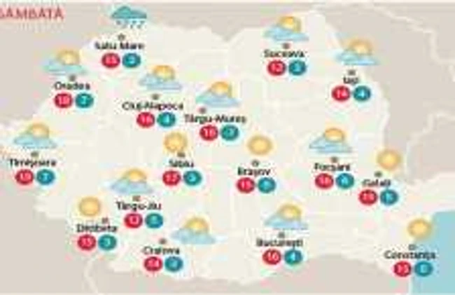 Cerul va fi variabil, ceva mai noros la noapte în estul şi în sudul ţării, unde, pe arii restrânse, se va produce ceaţă, asociată, izolat, cu burniţă. Temperaturile maxime vor fi cuprinse între 9 şi 19 grade, cu cele mai ridicate valori în vest.