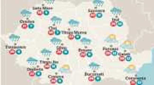 Vremea va fi în general instabilă în jumătatea de est a ţării, unde, îndeosebi ziua, cerul va prezenta înnorări mai accentuate şi pe arii restrânse va ploua. Ploile, mai ales averse, vor fi însoţite de descărcări electrice şi de intensificări de scurtă durată ale vântului. În restul teritoriului, vremea va fi predominant frumoasă. Temperaturile maxime vor fi cuprinse între 15 şi 25 de grade.