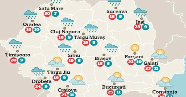 după-amiază. Temperaturile maxime vor fi cuprinse între 16 şi 26 de