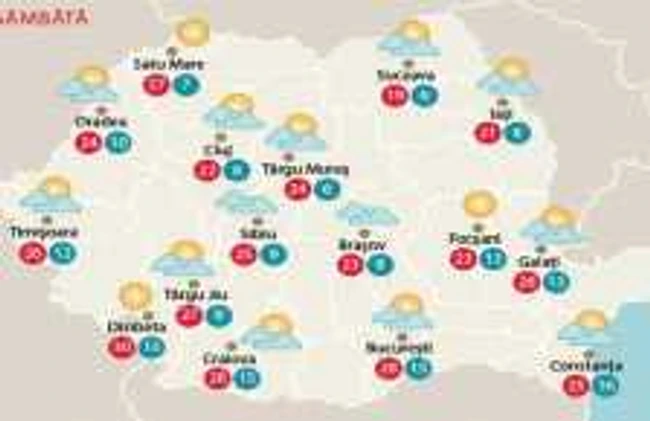 În zona geografică a ţării noastre, presiunea, în creştere uşoară, distribuită foarte uniform, şi circulaţia slabă vor determina vremea în general frumoasă, dar secetoasă. Cerul, variabil, va fi ceva mai noros ziua în centrul şi în estul ţării, iar la noapte, în sud-est şi în sud.
