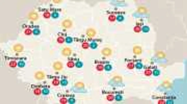 Dar, în sud-est şi în Peninsula Iberică, presiunea se menţine ridicată, iar vremea este predominant frumoasă. La noi, presiunea la valori relativ ridicate, circulaţia sudică şi mişcarile descendente ale aerului vor menţine vremea predominant frumoasă şi cerul variabil. Temperaturile maxime vor fi cuprinse între 15 şi 23 de grade.