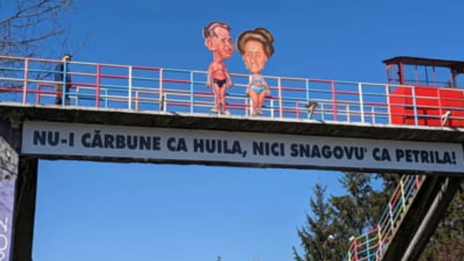 0O caricatură cu Nicolae și Elena Ceaușescu, montată în incinta fostei mine Petrila, a fost furată de persoane deocamdată necunoscute. Este vorba despre un panou de artă vizuală pentru care artistul Ion Barbu oferit chiar și o recompensă.