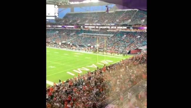 O pisică a fost salvată duminică de fanii prezenţi la un meci de fotbal american de pe stadionul Hard Rock din Miami, Florida, după ce a căzut de la mare înălţime şi a fost prinsă într-un steag, informează BBC.
