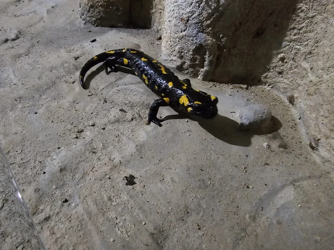 O salamandră de foc care și-a petrecut iarna în galeriile unui baraj din România a ieşit din hibernare