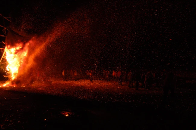 Obiceiul mutat de pe dealuri în mijlocul satului. Este legat de Moșii de Iarnă și de Lăsatul Secului