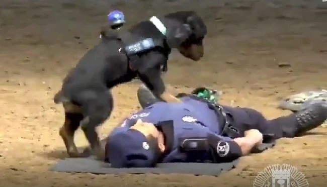 Momentul care l-a transformat pe Paco într-o vedetă a avut loc în timpul unui exercițiu public organizat de Poliția Municipală din Madrid. Un agent a simulat că își pierde cunoștința și cade la pământ, iar reacția câinelui a fost imediată.