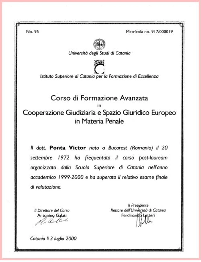 Timp de 12 ani, în CV-ul premierului Victor POnta a figurat un master în drept penal internaţional pe care l-ar fi făcut între martie şi iunie 2000, la Universitatea Catania, Italia.